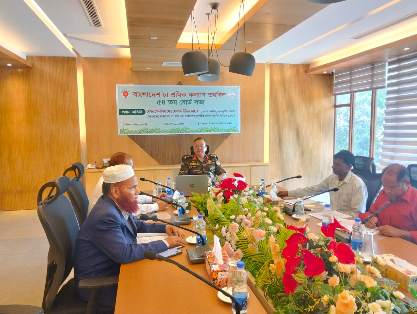 বাংলাদেশ চা শ্রমিক কল্যাণ তহবিল পরিচালনা বোর্ড এর ৫৪তম সভা ০১/০৪/২০২৬ তারিখে বাংলাদেশ চা বোর্ড এর চেয়ারম্যান মেজর জেনারেল মেজর জেনারেল মোঃ মেসবাহ উদ্দিন আহমেদ, এসপিপি, এনডিসি, এএফডব্লিউসি, পিএসসি এর সভাপতিত্বে টি রিসোর্ট এন্ড মিউজিয়াম, শ্রীমঙ্গল, মৌলভীবাজার এর সভাকক্ষে অনুষ্ঠিত হয়।